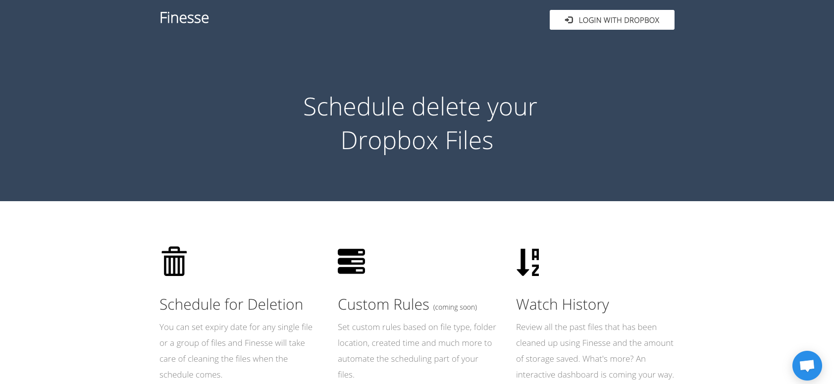 Agencias / InsurgentePress, Ciudad de México.- Finesse, una webapp que permite programar el borrado de archivos automáticamente en tu cuenta de Dropbox. Se puede seleccionar un archivo o varios de ellos, y establecer una fecha y una hora en la que se deberían borrar.